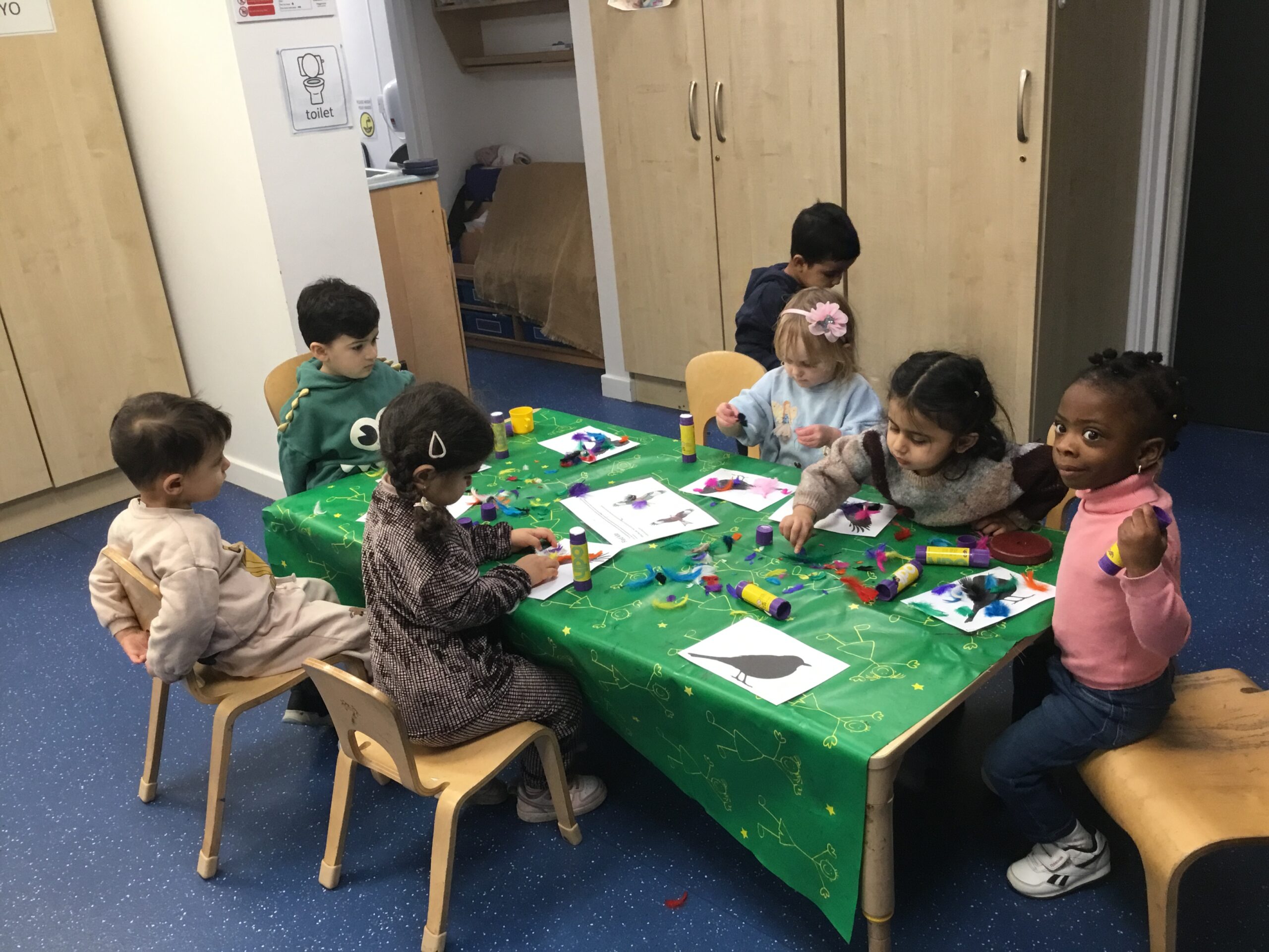 It was a beautiful day to be outside, and the children were fully engaged, observing nature, asking questions, and sharing what they saw with their friends. We were so proud of how enthusiastic and curious they all were. Back inside, we continued our bird theme with lots of exciting activities. The children took part in: